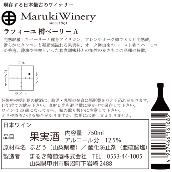 【まるき葡萄酒】まるき葡萄酒 ラフィーユ 樽ベーリーA 2023