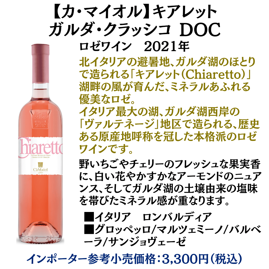 ❸【カ・マイオル】キアレット・ガルダ・クラッシコ DOC 2021 × 1
