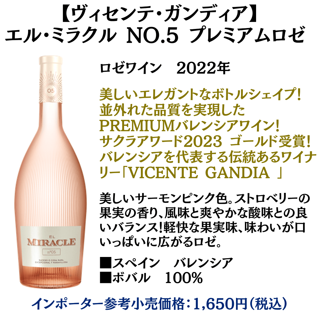 ❷【ヴィセンテ・ガンディア】エル・ミラクル NO.5 プレミアムロゼ 2022 × 1